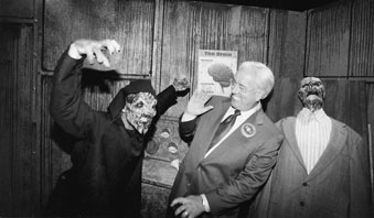 海洋公園推出鬼屋迎接萬聖節。圖為專誠由美國聘請回來的演員與行政總裁高詩禮合照。 (劉國權攝)