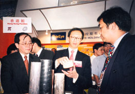 梁錦松昨在深圳參觀高新科技成果交易會,對循環再造塑膠甚感興趣。