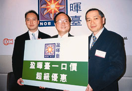 匯豐個人理財業務總部按揭業務主管羅康平(右一)、長實高級營業經理何雨盈(中)及營業經理尹紹剛。