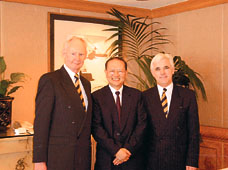 澳洲迪肯大學(Deakin University)與高寶教育在港合辦MBA遙距課程。(左起:迪肯大學校長威信,高寶教育董事總經理馮輝煒及迪肯大學商管校長卡達。)