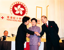 【本報訊】(記者 鄭群)香港紅十字會二○○一年周年大會昨假禮賓府舉行,由該會會長董趙洪娉主持,主席楊鐵樑作會務報告。周年大會上頒發各類獎項予一百位個人或團體,以表彰他們對紅十字會及社會的貢獻。