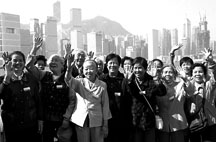 內地來港旅客增長,足以抵銷其他地區受「911事件」影響而減少的客量。圖為廣西遊客在本港合影留念。