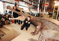 保羅•塞瑞諾博士介紹大如巴士的史前巨鱷「帝王鱷」。 (本報記者趙焜崗攝)