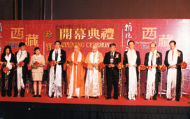 開幕式蘊含濃厚的西藏文化特色。西藏方面特地借出財神鎏金銅像展覽,寓意對香港經濟繁榮的良好祝願,並由財政司司長梁錦松主持揭幕。此外主禮嘉賓們亦主持了沙壇城的撒沙儀式。所謂「沙壇城」,是利用不同顏色的沙拼成一幅圖案,完成後由高僧開壇作法,並為之祈福。「沙壇城」將於展覽的最後一天(本月十六日)完成,屆時沙粒則會分派給在場有緣善眾。