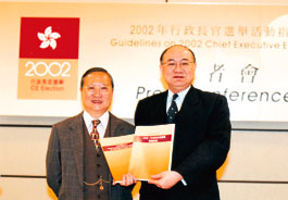 胡國興、梁乃鵬介紹《二○○二年行政長官選舉活動指引》。