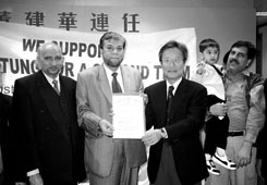 另外,本港少數族裔代表,包括印度、巴基斯坦及尼泊爾一行六十人,上周六到董建華競選辦公室遞交支持信,支持董建華連任第二屆行政長官,支持信由競選辦公室主任鄭維健接收。