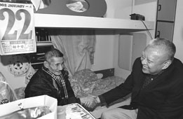 董建華昨日傍晚前往筲箕灣愛東村探訪分別為八十九歲和六十九歲的獨居婆婆和老伯。問候兩位長者日常的生活起居情況,並向他們贈送頸巾和食物。