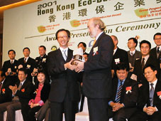 【本報訊】(記者 陸智豪)由環境保護運動委員會、中華總廠會、香港總商會及生產力促進局合辦的「二○○一香港環保企業獎」日前在灣仔會展中心舉辦頒獎典禮。今年共設「環保辦公室獎」、「環保建築承建商獎」、「環保物業管理獎(私營房屋)」及「環保物業管理獎(公營房屋)」四個獎項,以鼓勵機構在業務中實行環保措施。