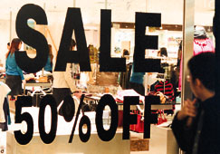 臨近歲晚,商舖都大幅減價,刺激消費。(本報記者 劉國權攝)