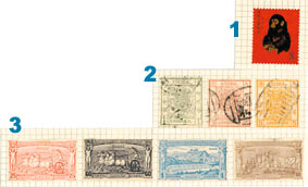 最安全是新發行的香港郵票,以面值購入,最低八折應可售出,輸百分之二十。如果上升,幅度以倍計。但因現今香港郵票發行次數較密,投資者宜挑選集之。例如生肖系列,或一些臨時加入發行的郵票。其次是中國清代郵票(參看圖二),相對而言,這類郵票升值幅度不大,隨著中國集郵者收入增加,收藏會更上一層樓,清代郵票大有所為。如果喜歡專題郵票的,體育題材(參看圖三)值得考慮,北京二○○八奧運,中國總會舉辦足球世界杯等因素,都會令這些郵品求過於供,特別是一些早期的郵品,很有升值潛力。