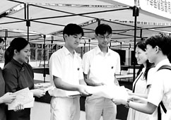 應屆中學會考生的壓力會因大學「拖學生」而增大,圖為學生報讀中六時的情形。