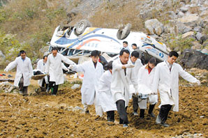 車禍傷員及時轉送南寧市各大醫院搶救。(本報廣西傳真)