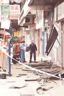 由於爆炸威力巨大,將網吧毗鄰兩間空置店舖門前四十呎乘五呎假天花簷篷震至倒塌。一個鋅鐵內膽面積三呎乘四呎黃色垃圾桶被炸至支離破碎,碎片擊破巴士站路線牌玻璃,一名在巴士站附近候車男子劉英才(四十一歲)被爆炸碎片割傷,幸僅受輕傷。