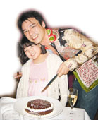 【本報訊】(記者 譚貽文)鍾鎮濤二十三號四十九歲生日,前晚相約一班圈中老友:鞏俐、梁朝偉、葉童夫婦,女友范姜於法國餐廳慶祝,女友送手錶作禮物,一對仔女則將自己最愛的公仔送給他,令阿B很感動。阿B道:「囡囡送的是熊公仔、仔仔是鐵甲人,我知這兩個公仔是他們最心愛的,竟然包得靚靚送了給我,上面寫了Daddy,I Love You。」