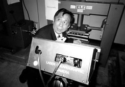洪友仁教授示範以激光探測石屎牆的安全情況。