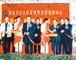 【本報訊】香港浸會大學深圳研究院福田中心上周六正式開幕,由深圳市人民政府副秘書長劉應力、教育局副局長陳觀光和浸大校長吳清輝主禮。