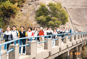 隨後校長梁麗琴宣布活動開始,十數輛旅遊巴士浩浩蕩蕩向鶴藪水塘出發。