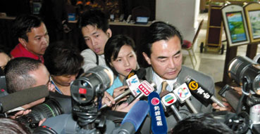 外交部副部長王毅被記者「包圍」。( 特約記者王軍攝 )