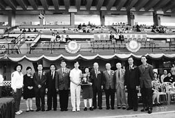 潮商學校舉辦田徑運動會,主禮嘉賓和獲獎者合影。