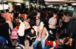 一批來自山東、湖北的旅行團早在上午八時就來到口岸,但等到十一時尚未能夠辦理出境手續,不少人怨聲連連,遊興盡失。他們紛紛埋怨深圳市有關管理部門考慮問題不周,偌大一個羅湖口岸,居然沒有一個廣播系統,聯檢大樓的現場值班人員,只能是「單槍匹馬」在指揮疏導旅客,儘管值班人員「累得半死」,但收效甚微。有的旅客更質疑:難道政府部門就沒有錢來設置這個十分重要的廣播系統?一位大汗淋漓的山東旅客說,如果有一個廣播器,就能夠向出入境的旅客通報深圳和香港的過關情況,讓久候的旅客了解口岸人流動向,減少誤會和磨擦,令大家心情平和地在原地等待,畢竟大多數人都是通情達理的。