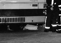 前日下午三時五十二分,何婦突然到樂富h巴士總站,手持橫額坐於七號線巴士站前(即當日她發生交通意外的現場),要找巴士司機理論,追討賠償,在五時許被兒子勸服離去。至晚上八時許,何婦又再到巴士站坐於巴士線出口上,警方到場勸解下她暫時離去。但至晚上十一時許,婦人又再到巴士站靜坐,阻礙巴士出入。站上工作人員報警求助,至凌晨時她一見警員出現,突然情緒失控,爬入一輛巴士車底與警員對峙。警方通知她的兄長及兒子到場勸解,直至凌晨二時,何婦才自行爬出車底,並無受傷,事後被送院接受檢驗。她在醫院時仍對索償一事耿耿於懷,情緒良久不能平靜。