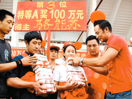 任達華前日在珠海出席彩票頒獎活動時攝。(本報珠海傳真)