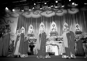 「傳燈」在佛教有薪火相傳、光明不斷的含義,昨晚的傳燈法會台上擺設了七尊莊嚴的多寶如來,在諸山長老大德率領下,各善信先後分別唸八十八尊佛,隨著一念而下拜,其後由諸位法師在場館內帶領眾善信繞佛,方告功德圓滿。
