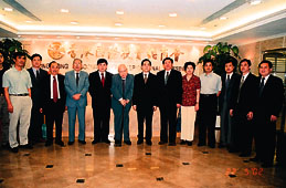 九江市市長王忠武(左五)受到徐四民、許智明、方潤華等人熱烈歡迎。