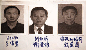 華航CI611航機遇難駕駛員:左起正機師易清豐,副機師謝亞雄,飛航機械師趙盛國。