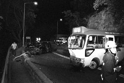 【本報訊】青山公路昨日凌晨發生交通意外,三輛私家車懷疑切線失控與一輛小巴相撞,意外中共有十五人受傷送院,幸傷勢並不嚴重,大部分傷者經敷藥後出院。另外,一輛私家車昨晨在大埔吐露港失控,衝落十五米山坡,車上四男子受輕傷,警方已進行調查。