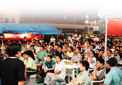 內地球迷聚集在廣場上觀戰。 徐超 攝