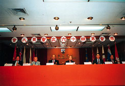 湯國華、黃熾雄、鄭寶和等在會員大會上。