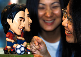 韓國女士選購世界杯國腳安貞桓的Q版公仔。(路透社)
