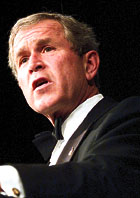 布什在華盛頓沙利文高峰會晚宴上講話。 (路透社)