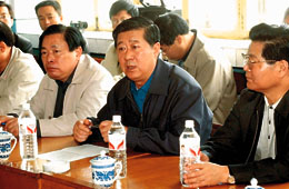 國家安全生產監察局局長王顯政(前右二)提出下一步救災方案。 (新華社)