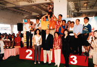 九巴香港國際龍舟邀請賽二○○二昨日在添馬艦海旁隆重舉行,來自本港、內地、澳門、日本、菲律賓等國家和地區的一百五十餘支龍舟隊參加了此次大賽,賽後行政長官董建華作為主禮嘉賓為國際男子錦標賽和特首杯十八區龍舟錦標賽的獲勝隊伍頒獎。
