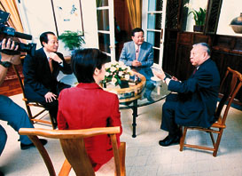 鳳凰衛視首腦劉長樂、王紀言及主播吳小莉採訪董建華。