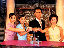 陳啟泰與三位「天使」做《百萬富翁》節目。