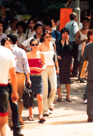 天文台呼籲市民提高警惕,以防中暑及曬傷。截至昨天,天文台在七月份共發出三次酷熱天氣警告。 (莊海源、羅崇基攝)