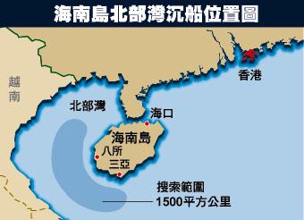 海南島北部灣失蹤船位置圖