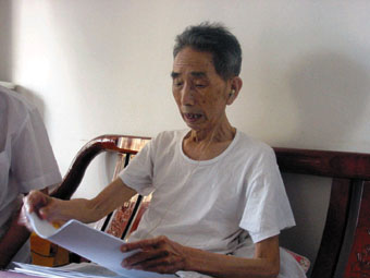八十五歲高齡的新中國第二任金門縣長梁新民。(許蕾攝 本報廈門傳真)