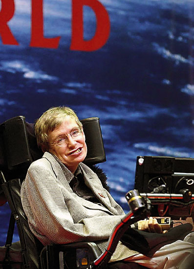 【本報記者陳惠、實習記者斯瑪狄杭州十五日電】他殘疾的身軀蜷縮在狹窄的輪椅裡,思想卻依然自由翱翔於宇宙奧秘的探索中。這位世界知名科學家、《時間簡史》的作者斯蒂芬.霍金今天在浙江大學擠滿聽眾的邵逸夫體育館裡,作了關於「膜的新世界」的演講,把我們處身的空間猜測和描述為在一個多維和多膜的被稱為「巨型宇宙」內的一個四維膜。這位天才的應用數學和理論物理學家表示,關於宇宙的起源和命運的基本思想可以不用數學來陳述,而且沒有受過專業訓練的人也能理解。