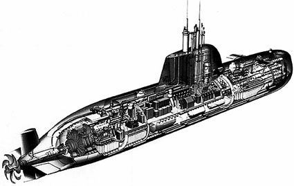 德國哈德威造船廠宣布與美國諾斯洛普古曼公司簽約,將合作生產護航艦和潛艇,透視圖中為德國哈德威造船廠專供外銷的二一四型先進傳統潛艇。(圖片提供:哈德威檔案資料) (中央社)