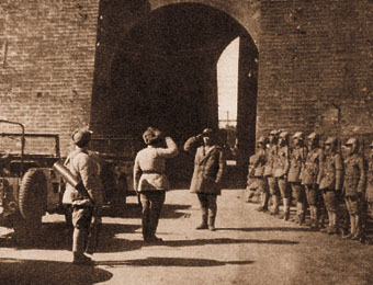 傅作義部二十五萬餘人接受和平條款。這是解放軍接防部隊到達朝陽門。