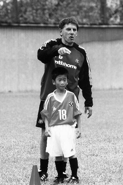 前英格蘭國腳比士利親自下場指導小球員。 (本報記者 吳志隆)