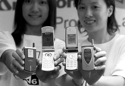 國產手機年來大肆發展,力敵入世後外國貨的競爭,圖為廈門廈新推出的兩款新手機。