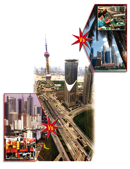 他描繪了新加坡所面對的強勁競爭。其中,馬來西亞準備傾全力發展柔佛州,使它能與新加坡展開全面的競爭。中國所帶來的挑戰就更大了,因為北京,上海及沿海城市的生活水平已全面提升。