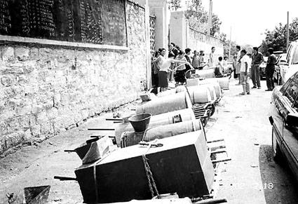 等著拉水的水車排滿長街。
