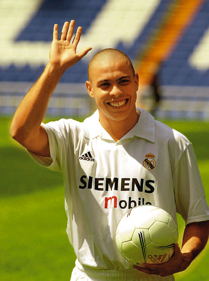 朗拿度如願以償穿上皇家馬德里的球衣,立即意氣風發。(美聯社)