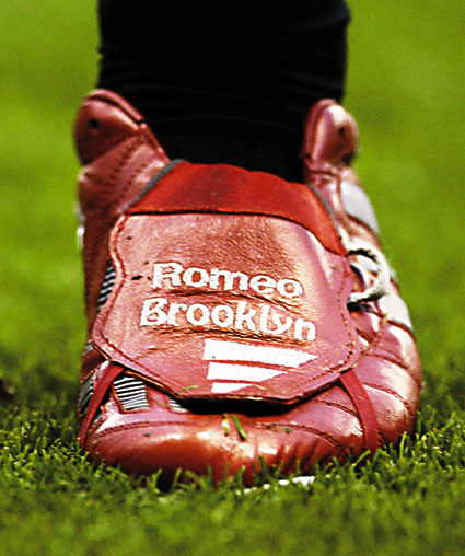 碧咸球靴已雕上他兩個仔羅密歐和布祿崙的名字。 (路透社)
